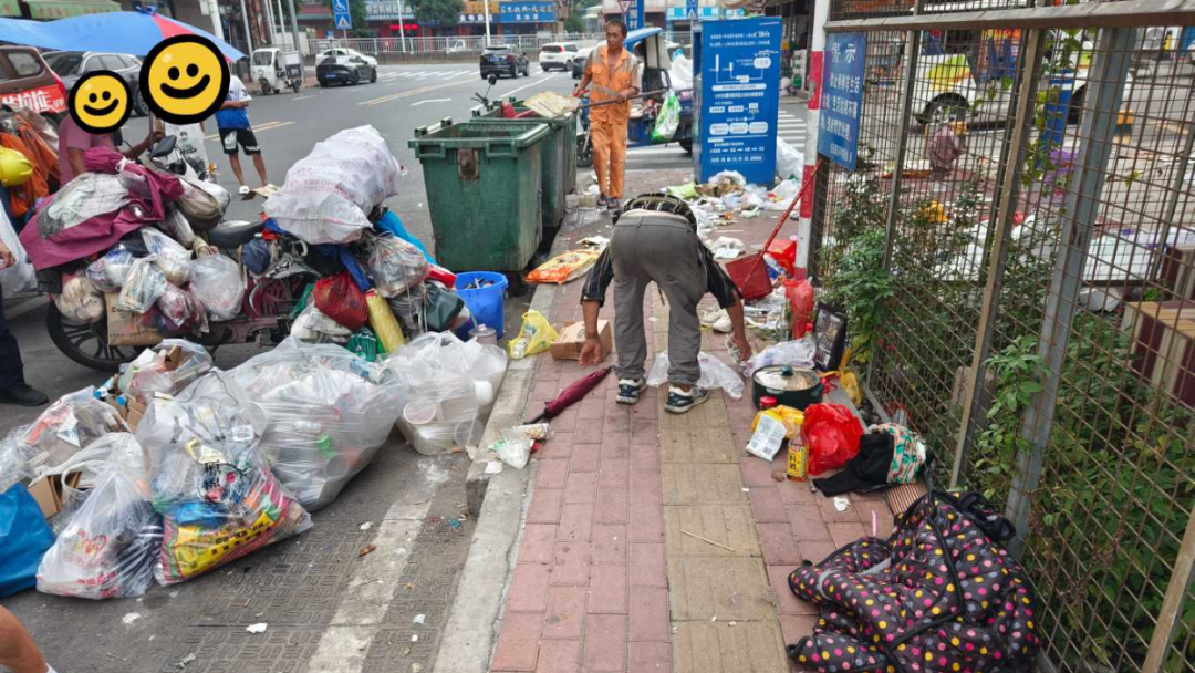 近日,东平村网格管理员在东业路巡查时,接到群众反映,有个拾荒者为了便于翻找废旧物品,将公共区域的几个垃圾桶翻倒,遍地的垃圾发出臭味,把周围群众及商铺店主熏得苦不堪言。得知这一情况后,网格管理员立即上报至东平村智网工作站,随后网格长联系辖区环卫工人一同到场处置。