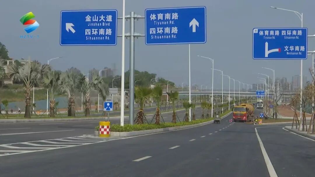 金山大道南段,北起金山大道与体育南路交叉路口,南接泰祥路,主道8车道,辅道4车道,共计双向12车道,设计时速60公里/小时,全长4.6公里。记者昨天上午在惠州大道南段施工现场看到,路面标识标线、全线路牌、红绿灯所有交安设施已经安装到位,工人正在做通车前的路面清洁、人行天桥等附属设施的完善收尾工作。
