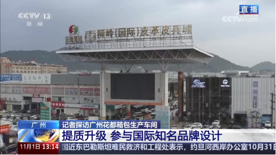 “广州花都狮岭镇作为国家级外贸转型升级专业型示范基地,政府也正在引导当地的企业进一步增强前端设计、终端销售,借助广交会这一重要的国际贸易平台,在创新的基础上进一步开拓国际和国内两个市场,相信在不久的未来更多来自花都的时尚、好看、耐用的箱包类产品也将会成为世界潮流新的风向标。”11月1日,CCTV13午间新闻如是报道。