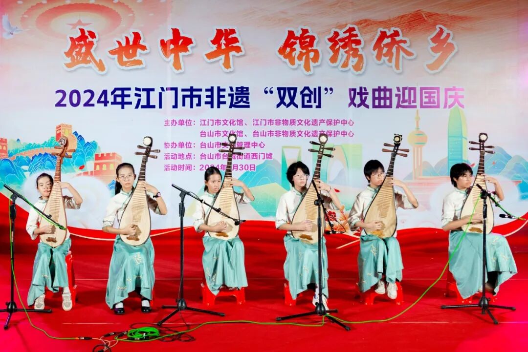 9月30日晚,台山市文化馆组织非遗项目“广东音乐”“粤剧”“台山民歌”等在台山市四九镇进行展演,营造喜庆热烈的氛围,以丰富多彩的传统戏曲艺术庆祝中华人民共和国成立75周年。