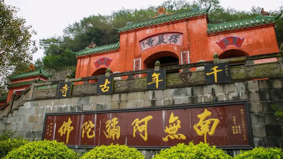 楞严存古寺,点缀岩光湖