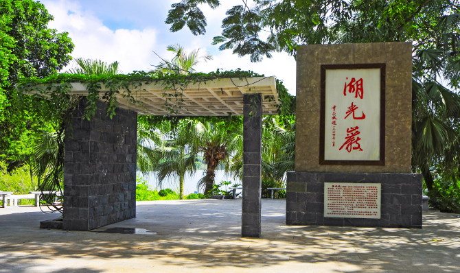 “湖光岩”的墨宝在亭上