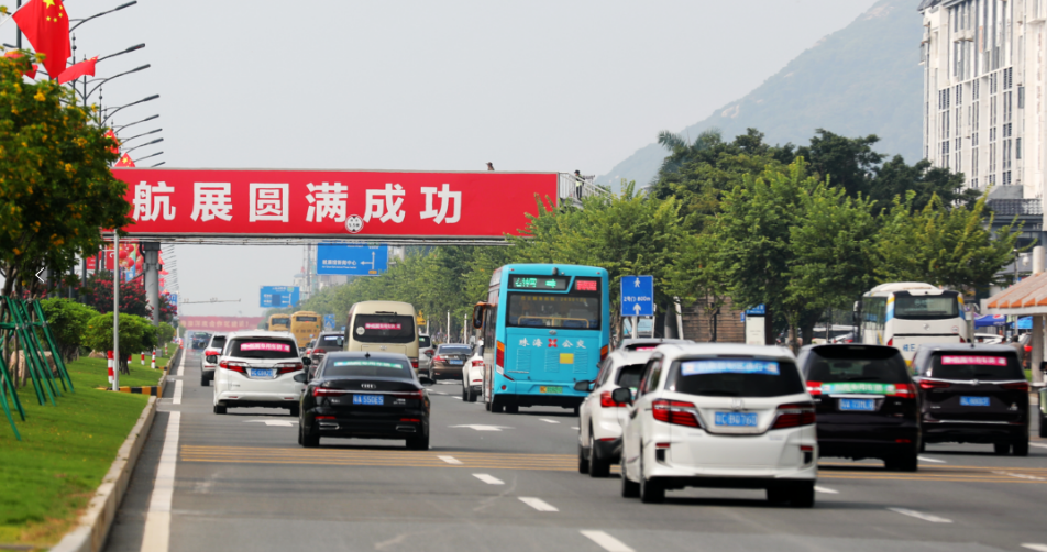 航展期间,航展中心周边实施交通管控,乘坐出租车和网约车不能直接进入核心区,需“西进西出,绕行接驳”,经洪鹤大桥——鹤港高速(乘客需支付高速公路通行费),行经珠海机场高速往返珠海机场西侧P6停车场,再换乘接驳公交前往P2停车场后,步行前往航展中心1号门。