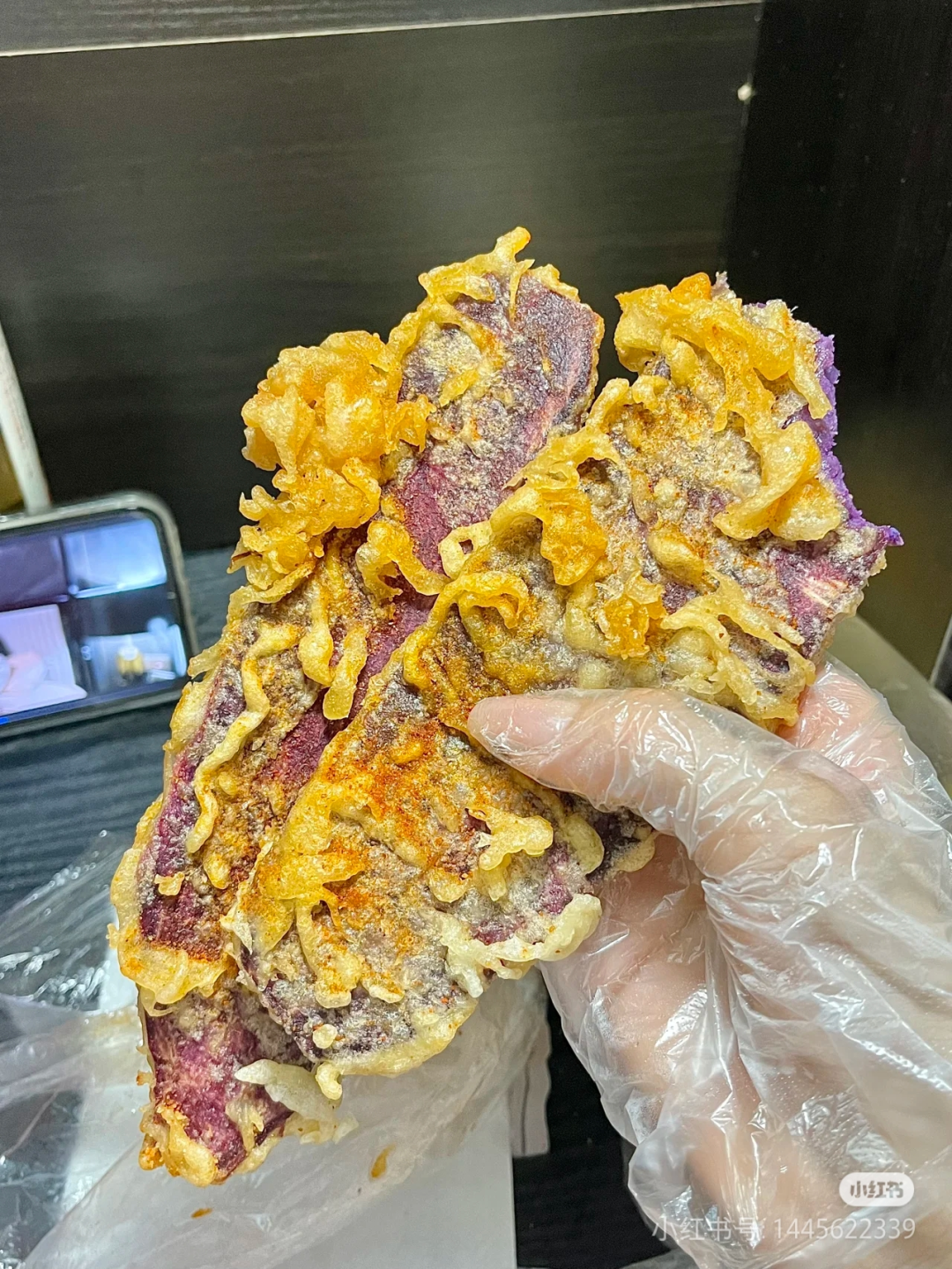 将番薯裹上一层面浆