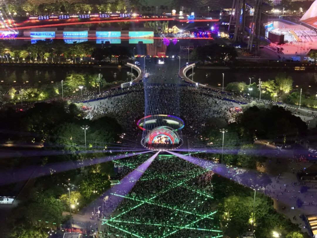 在广州城央首次呈现 360°的环状灯光秀