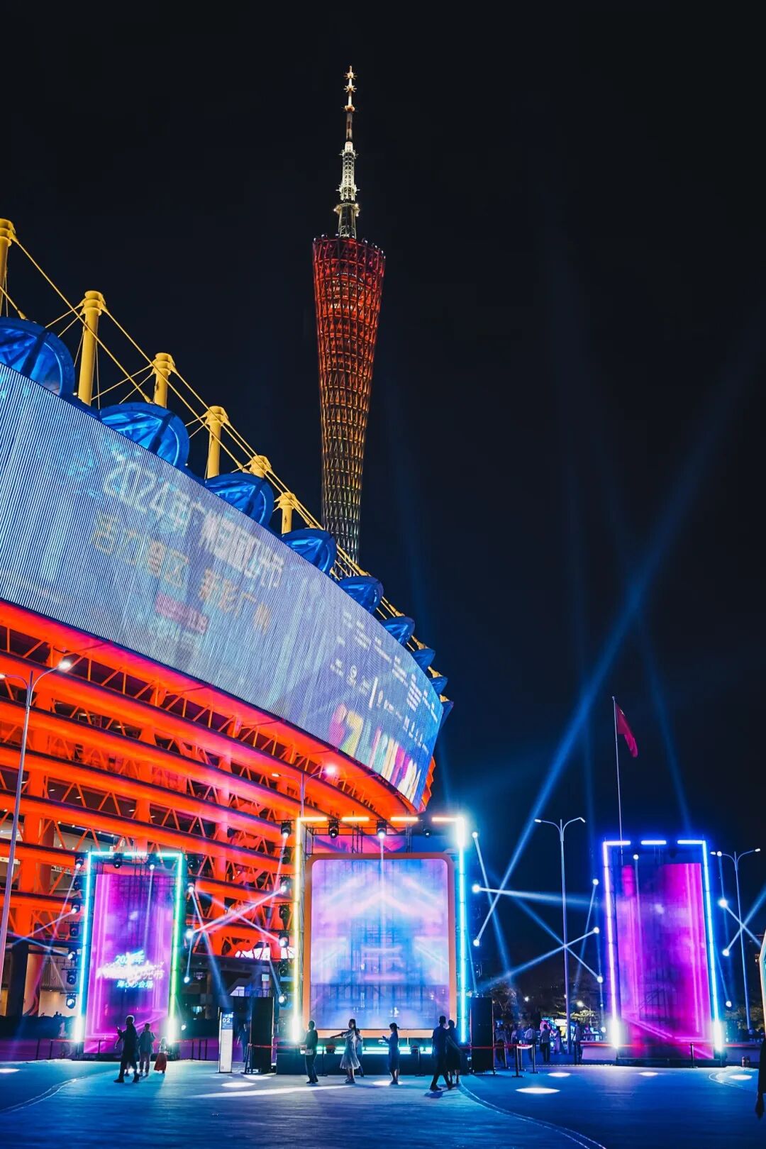新中轴会场:花城广场、海心沙亚运公园(需预约)、广州塔一江两岸会场:沿江路24栋建筑立面、猎德大桥、海心桥、琶洲西区立面