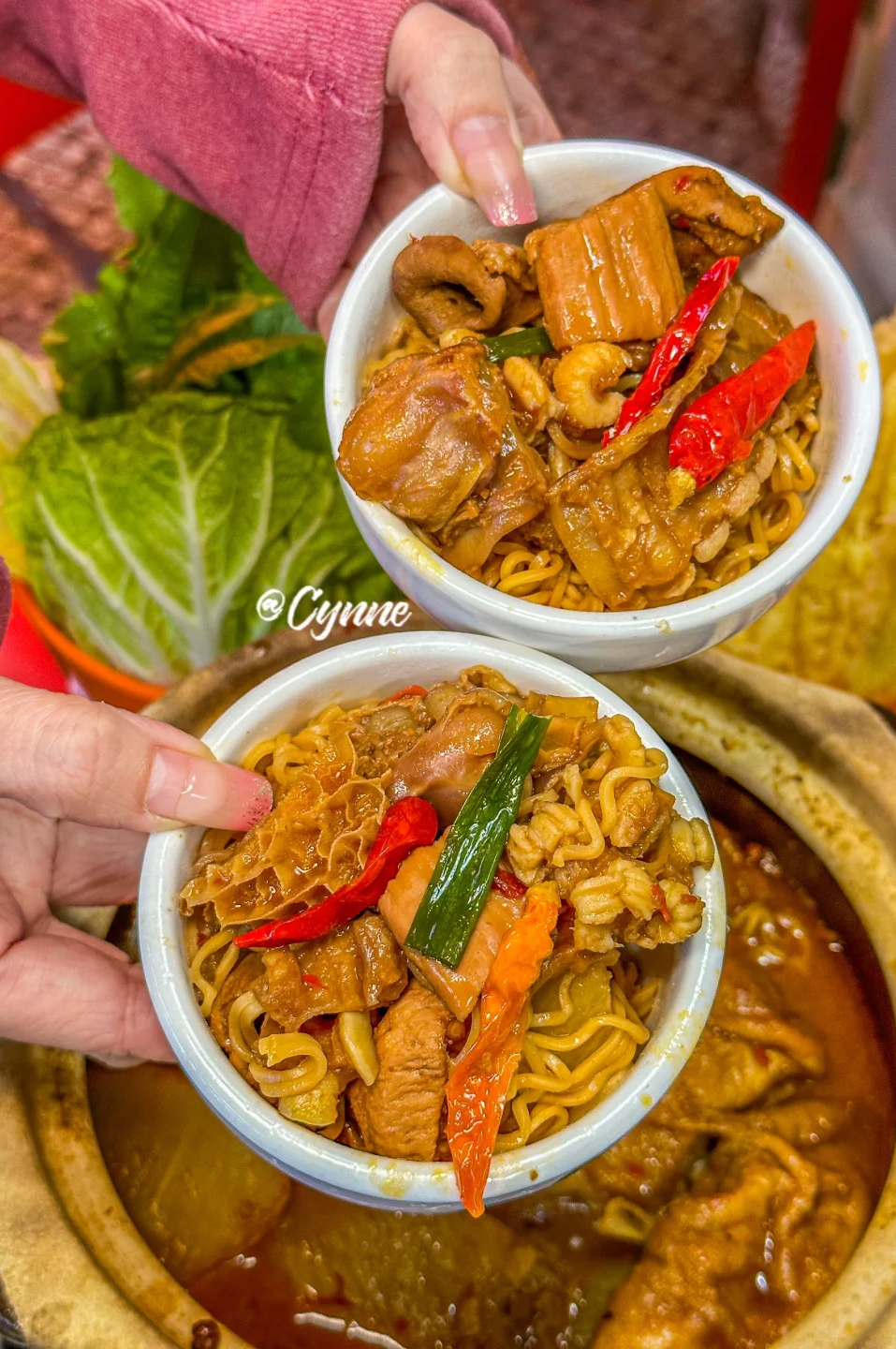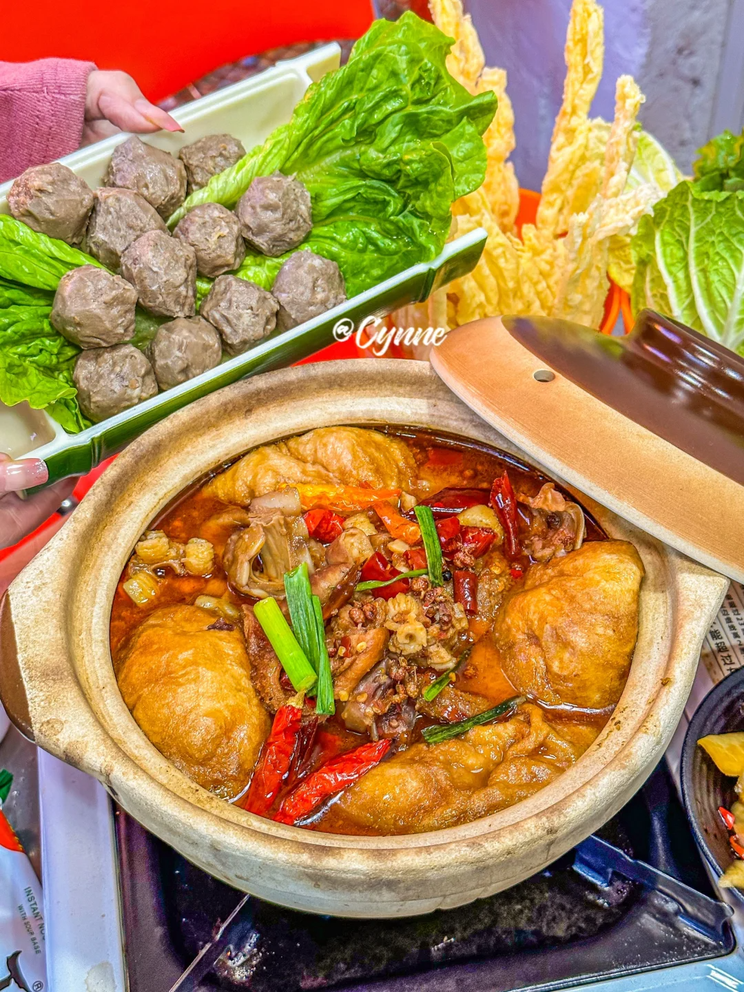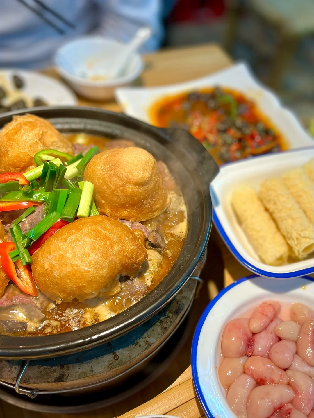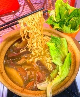 牛肉丸、蔬菜、腐竹、方便面等等