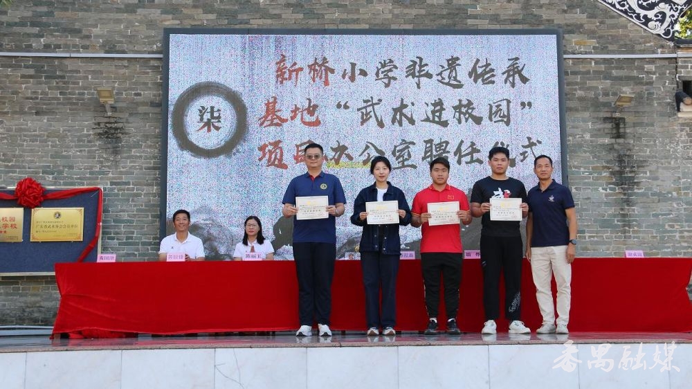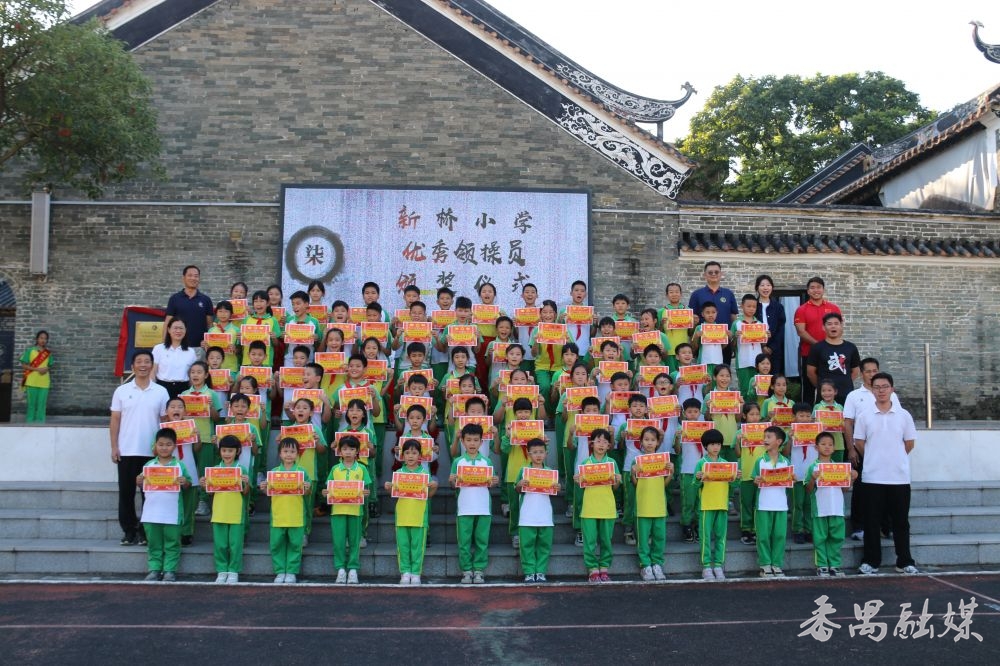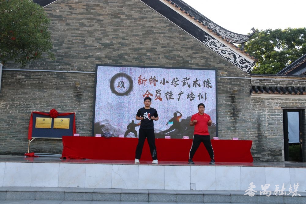据悉,今年10月,新桥小学积极响应国家体育总局、教育部以及广东省教育厅号召,申报国家“武术进校园”试点学校和“广东省校园武术五星级学校”。10月22日,在有着204年历史的九成书院举行了“武术进校园”培训班暨领操员特训营开班仪式。经过三周的严格培训,75名领操员在结营汇演中大放异彩。