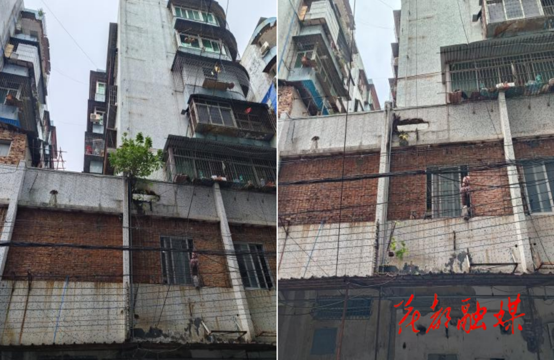近日,杏林社区网格员收到居民求助,反映其居住的食品厂小区(无物业管理的老旧小区)楼宇外墙有多处长出树苗,随着树苗越长越大,已有撑坏外墙的危险,存在较大安全隐患。