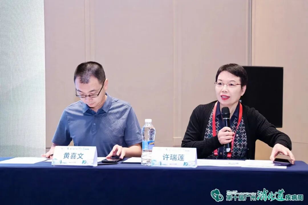 会议第七节由深圳市人民医院许瑞莲主任医师、梅州市人民医院黄喜文主任医师主持。邓艳红分享了《中六临床研究布局》,介绍了团队在结直肠癌新辅助及晚期内科治疗的IIT临床研究布局。厦门大学附属第一医院李佳艺主任医师、广州医科大学附属惠州医院牛连夫主任医师、广州医科大学附属第五医院余桂芳主任医师、珠海市人民医院张贵海副主任医师围绕该主题展开了讨论。