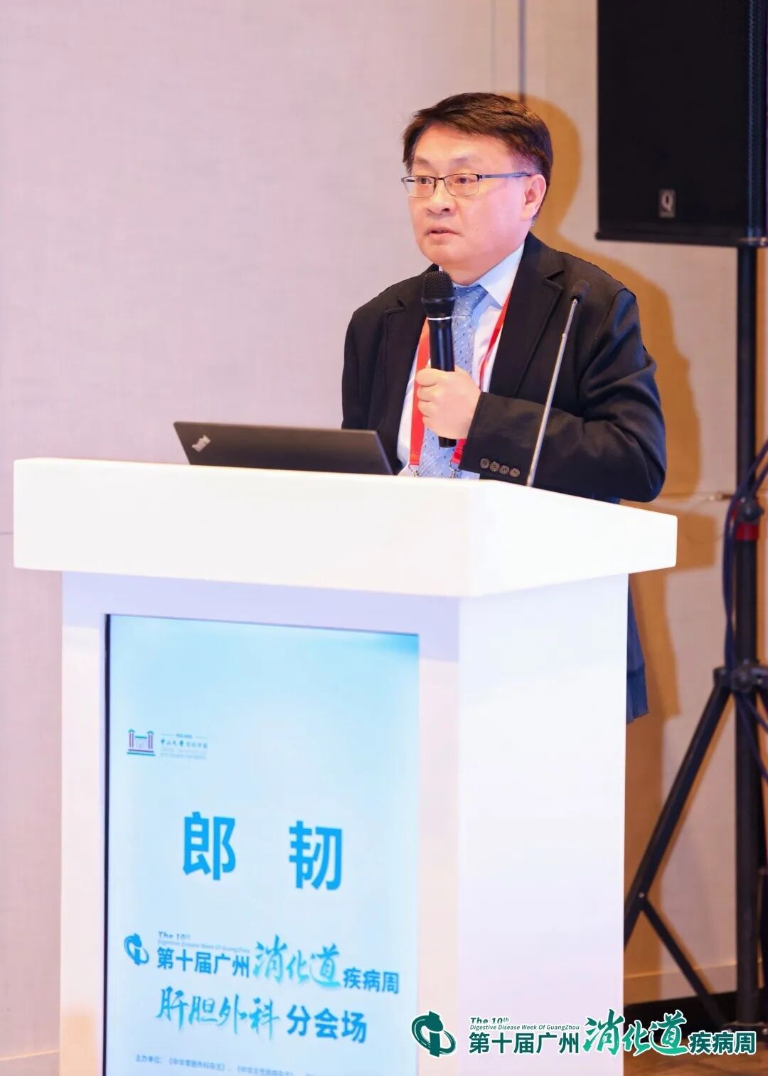 我院结直肠外科学科带头人兰平教授开幕致辞。欢迎所有远道而来参会的各位与会领导及专家们,表达了对肝胆胰腺领域治疗成果的厚望,预祝第十届广州消化道疾病周肝胆分会场大会圆满成功。