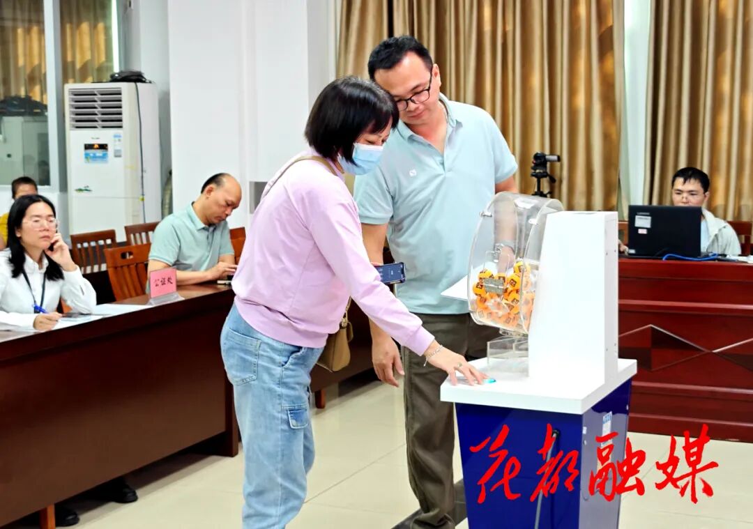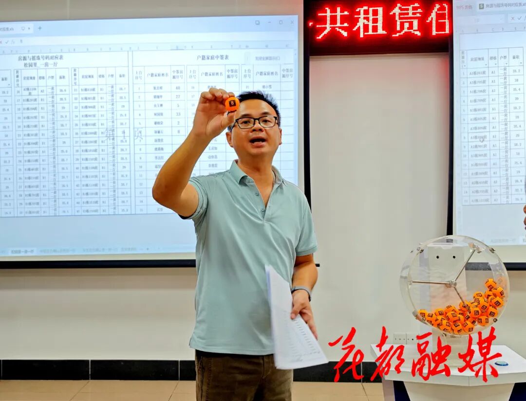 由于本次房源充足,所有到场的户籍家庭均可分配到房源,因此本次摇珠分配采用直接由参加本轮意向登记按时到场的52名户籍家庭代表直接上台摇号选出对应房号进行预分配。
