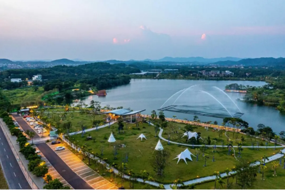 要说花都哪里既具有文艺范又不失烟火气,那马岭村的喜花里活力休闲港必须榜上有名!晚霞、湖面、车尾厢市集、艺术灯光秀、美食街区……在喜花里活力休闲港,你想要的“远方”,这里都有。喜花里的云道边有个大水库,无遮挡的湖面泛起微风让喜花里凉爽宜人。在这里,你可以在骑行中享受户外生活,感受那份宁静和美好。