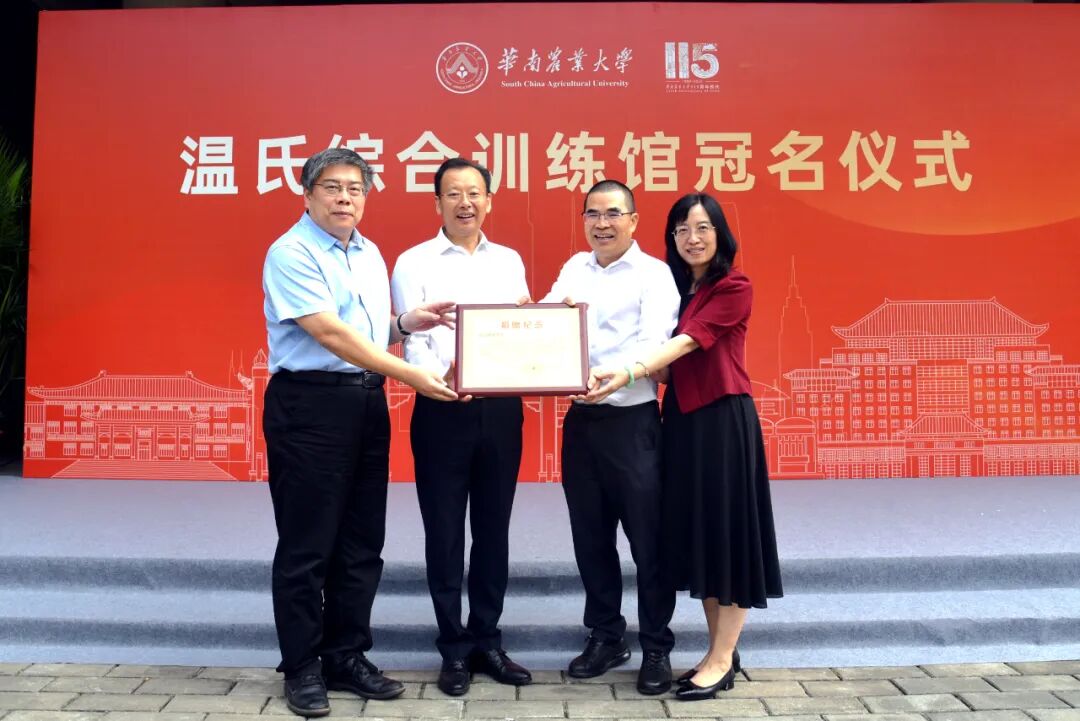 11月9日上午,华南农业大学在启林北举行综合训练馆捐赠冠名仪式,启林北综合训练馆正式冠名为“温氏综合训练馆”。集团董事长温志芬,集团副总裁孙芬、张祥斌,集团首席运营官陈小坚、吴珍芳,华南农业大学党委书记李凤亮、校长薛红卫出席冠名仪式,副校长钟强主持仪式。