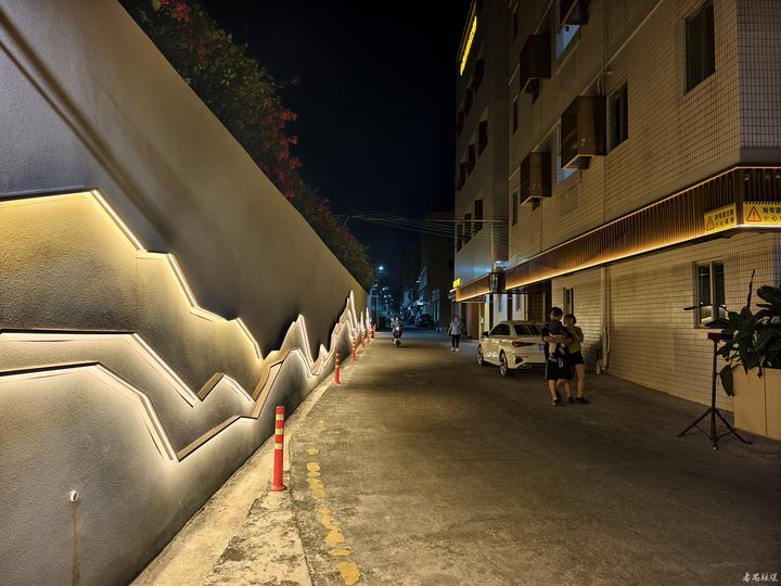 夜晚的墙面灯带