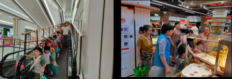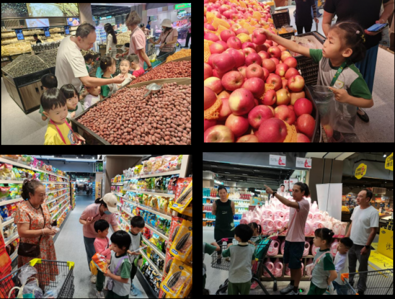生活即教育,教育即生活。“走电梯时要注意安全,统一靠右站好,扶好扶手,注意安全。”幼儿在生活中学习,老人见多识广、阅历丰富,过程中细心教导幼儿言行举止。超市负责人引导幼儿参观超市,了解超市物品的种类、摆放规律,教导孩子如何挑选商品。幼儿根据购物计划自行购物,购物过程中认真查看商品价格,计算着自己购买商品的总金额,并顺利买到了自己喜爱的物品。