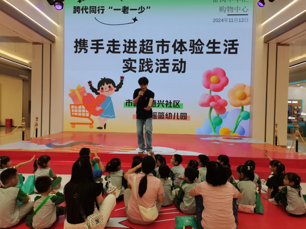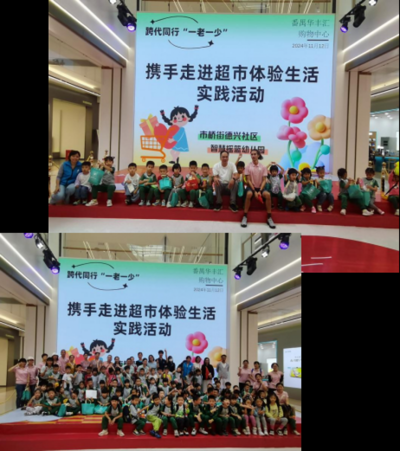 11月12日,番禺区市桥街德兴社区党委、德兴社区新时代文明实践站、智慧摇篮幼儿园、市桥街东西片社工站、华丰汇购物中心、新万悦超市开展跨代同行“一老一少”携手走进超市体验生活实践活动。