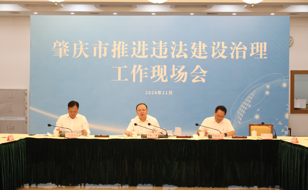 11月13日,肇庆市推进违法建设治理工作现场会议在肇庆高新区召开,会议贯彻党的二十届三中全会、省委十三届五次全会和市委十三届八次全会精神,落实省、市关于违法建设治理工作的决策部署,动员各地各单位进一步提高政治站位,始终保持严厉打击违法建设的高压态势,切实加大治违工作力度,坚决遏制新增、消化存量,为提升我市城乡人居环境、推动高质量发展提供坚强保障。市、区有关领导出席会议。