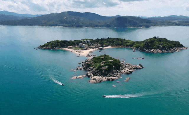 三角洲岛位于巽寮湾是中国第一个拥有合法产权的私人海岛一直以“水清、石奇、沙幼”三绝著称素有“中国的马尔代夫”的美誉