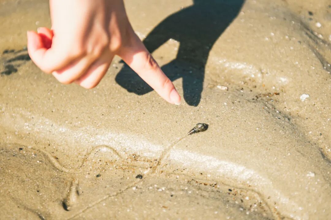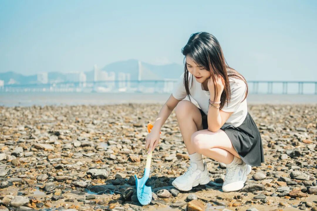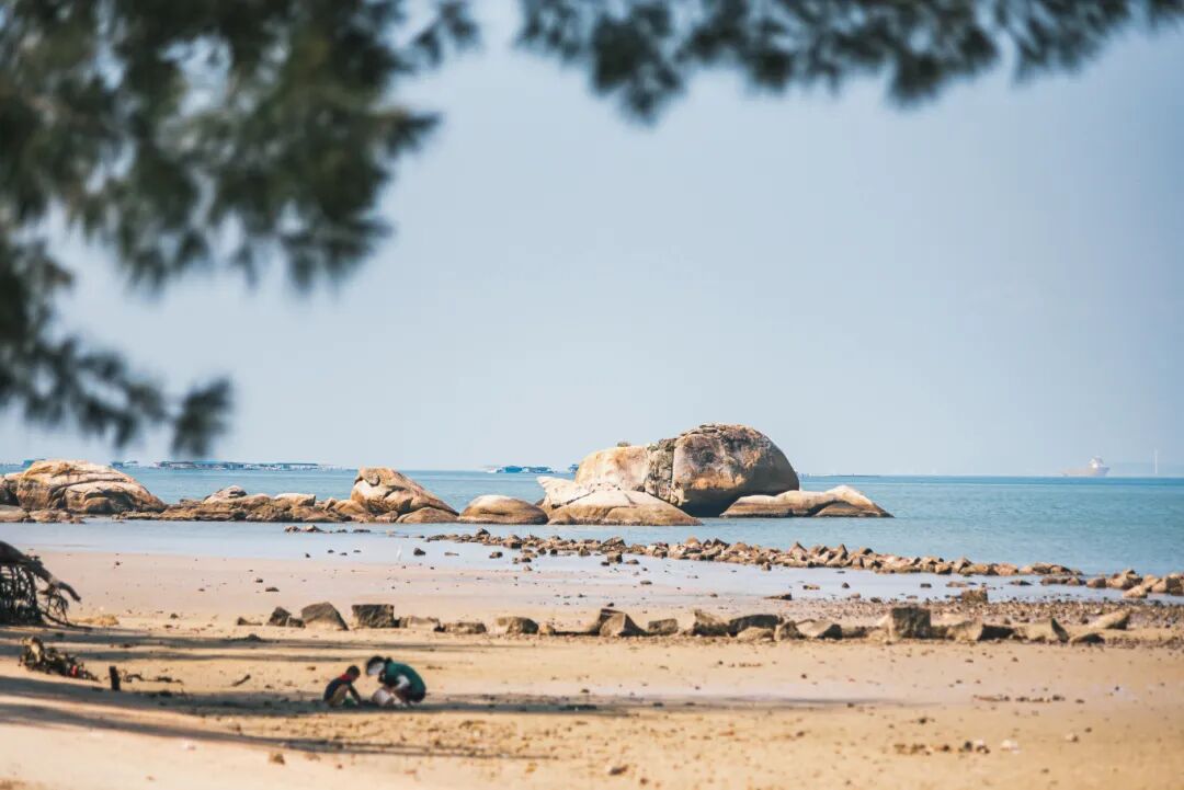 孩子们在这里可以轻松捡贝壳与挖螃蟹