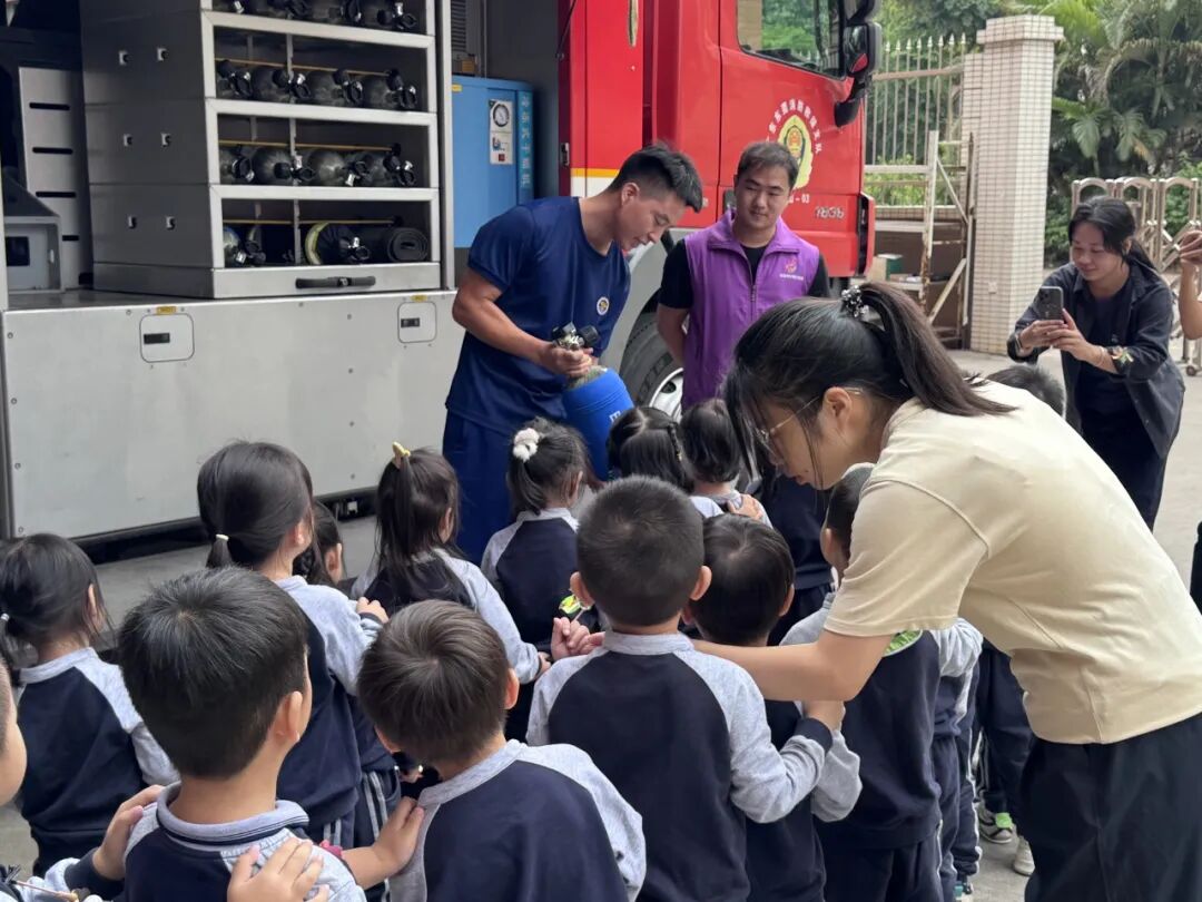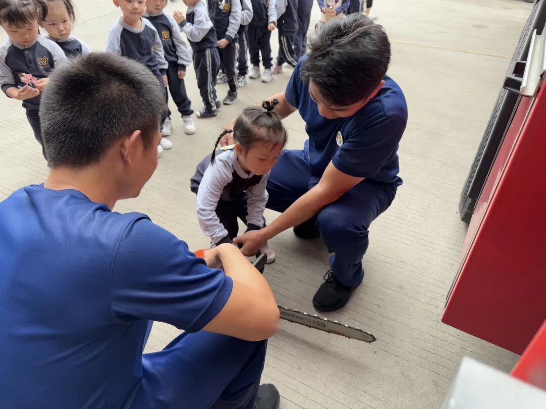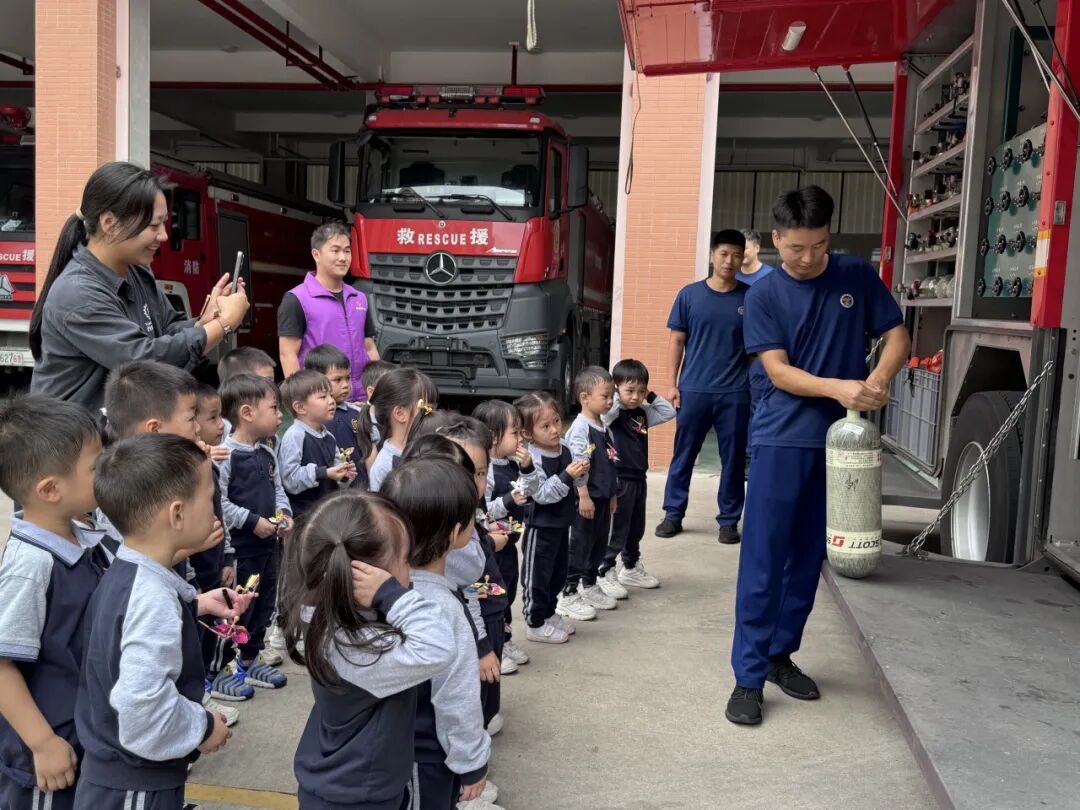 最令小朋友们兴奋的环节莫过于近距离接触高大威猛的消防车了,消防员详细介绍了这些车辆的功能和操作原理,并让孩子们登上消防车,体验了一把“紧急救援”。