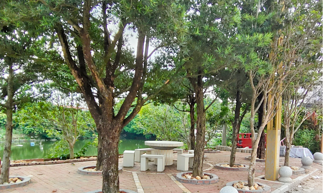 在黎少镇黎少村道路旁一角,一块原本杂草重生、杂物乱堆的闲置地,经过改造后,变成了一个绿树成荫、绿水环绕、可作休憩闲话的小公园,闲置地彻底变成了村民喜爱的微景点。