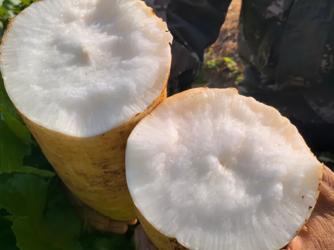 据了解,基地的黄田萝卜分批次种植,采收期从目前上市一直可持续到春节后。