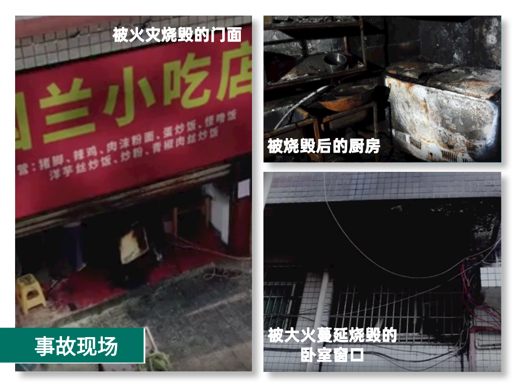 发生火灾的是一家名为国兰小吃店的门面,内部设有夹层堆放物资并住人,所有窗户均设置了不锈钢防盗窗,北侧防盗窗外还设置了广告牌。