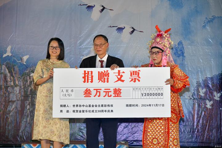 活动期间,爱国侨领、世界孙中山基金会主席彭伟权,广州市荣誉市民、香港同胞江锦标分别向金鳌乐社捐赠了3万元和1万元,以支持该乐社的发展。