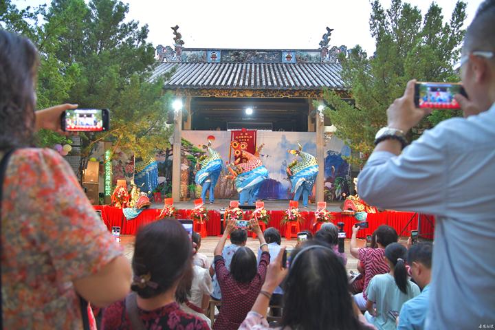 当日下午,沙涌村广琚祠堂座无虚席,热闹非凡。金鳌乐社成员和多名粤剧表演艺术家同台献艺,现场演唱了《黄啸侠大刀抗日》《金鳌传》等多首脍炙人口的经典曲目,让村民在家门口就能领略到岭南戏曲独特魅力。