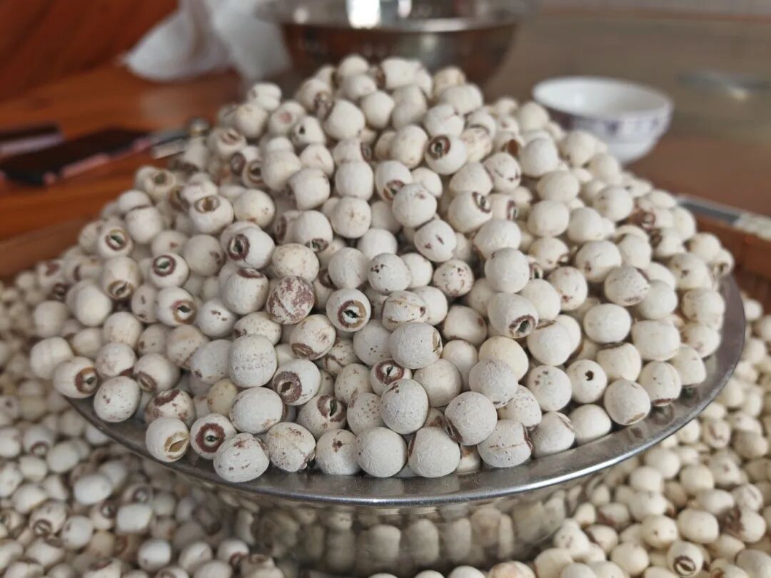 坳仔镇丰亨村的莲塘泥土肥沃、水质优良,盛产的莲子果粒饱满,通心率高,肉厚粒圆。煮熟后的莲子,质地软糯而不失嚼劲,轻轻一咬,仿佛能感受到绥江水的甘甜与大地的滋养一同在舌尖化开,带有微甘而鲜的天然风味,既不腻口,又回味无穷。