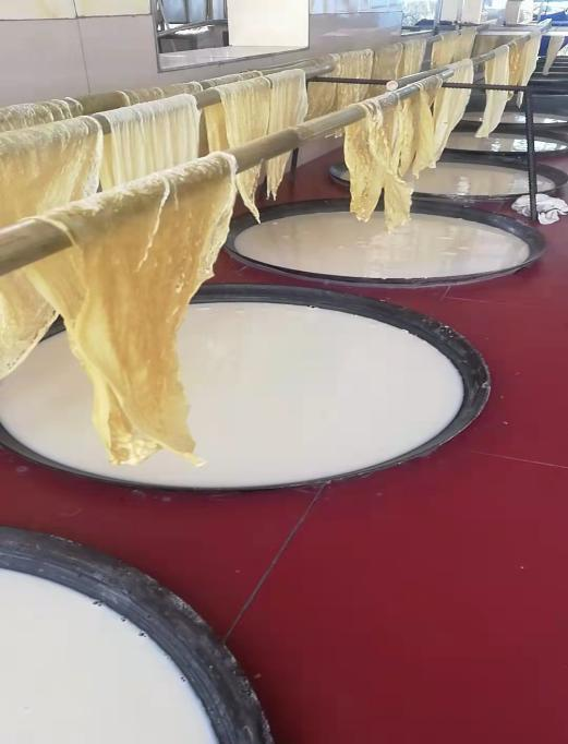坳仔镇的美南村出产的美女腐竹色泽鲜亮、豆香浓郁、远近驰名,深受广大食客的欢迎。美女腐竹的生产至今仍沿用古法制作,选用优质黄豆为原料,用当地的山泉水磨浆,磨好豆浆后,不点卤做豆腐,而是以草蕨为柴火进行烧煮,将上面凝结的一层豆油皮捏起挂到竹竿上进行晾晒,因此,制作出来的腐竹香气四溢、白嫩爽口、味道鲜美、口感筋道且有弹性。