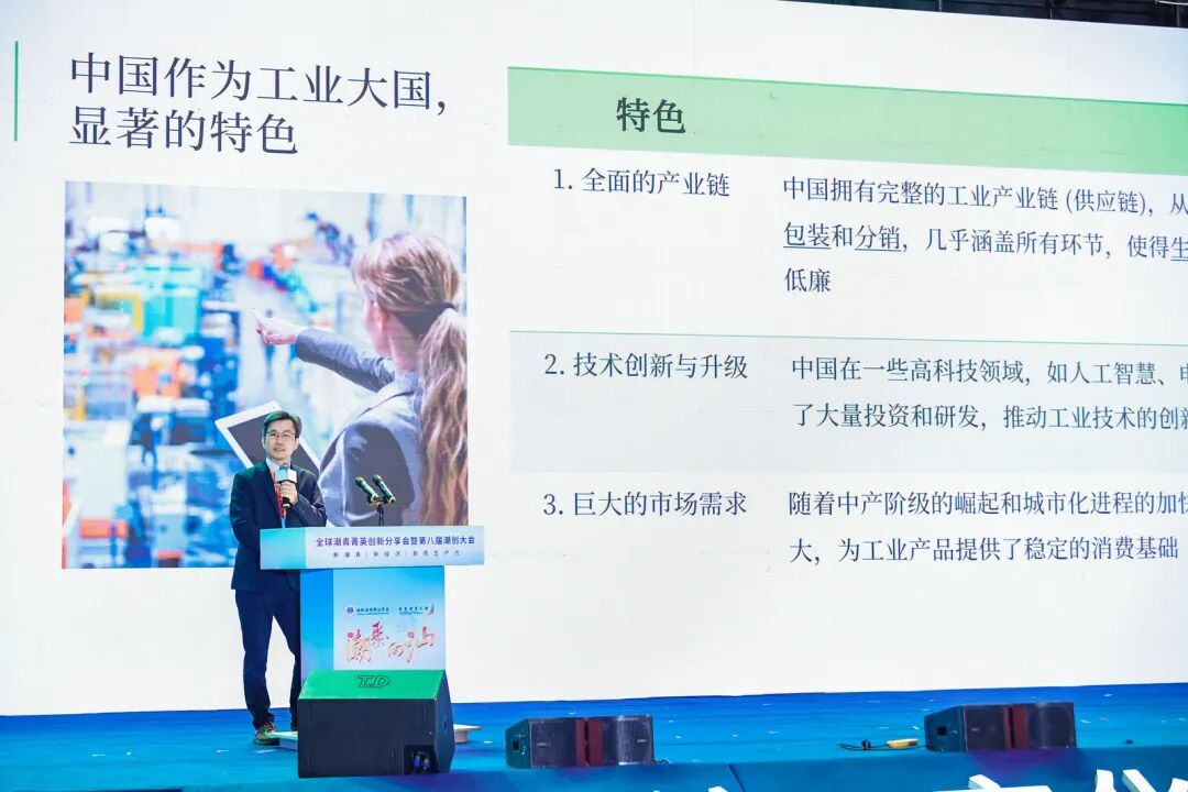 紧接着,在重磅的主题分享环节,快看漫画的创始人兼CEO陈安妮,璀璨资本创始合伙人吴晓丰,万美集团远东区总裁、香港青年工业家协会荣誉会长戴麟和中国工业互联网研究院数据管理与应用研究所所长陈杰浩都分别围绕”新质生产力“结合各自所处行业的发展融合作了主题分享。几位潮籍杰出嘉宾代表的精彩分享直接将大会推向了高潮,他们的真知灼见不仅为到场观众打开了新的视野,更为汕头推开了一扇接轨国际的窗口,扩大了合作共赢的大门。