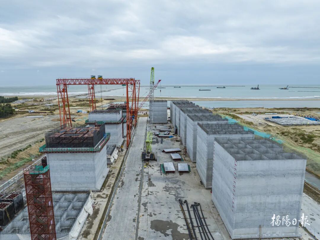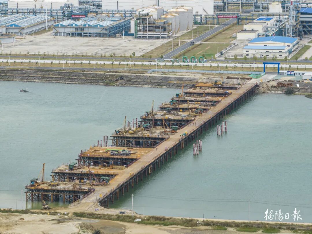 揭阳港南海作业区公共码头项目。它是揭阳建设规模最大且离国际航线最近的公共码头项目,建成后将有力推动揭阳港融入粤港澳大湾区世界级港口群,为大南海石化工业区发展提供坚实的运输保障。