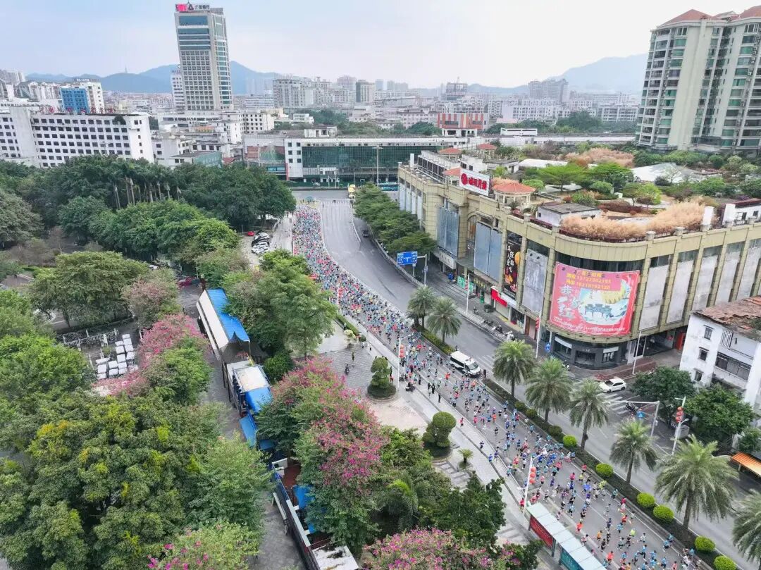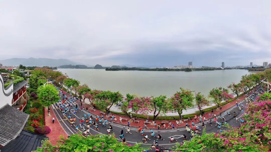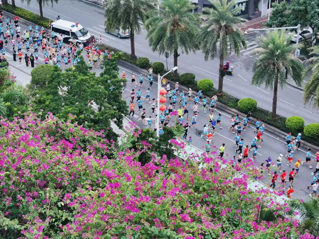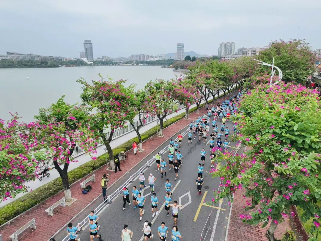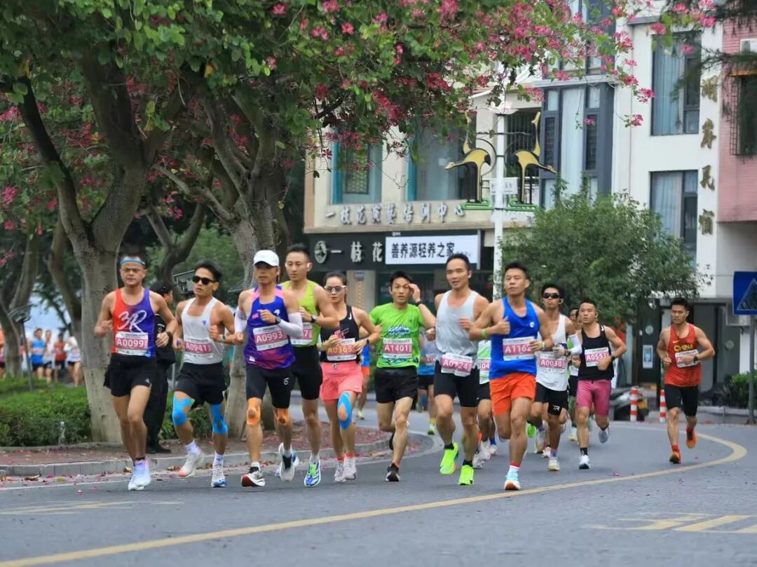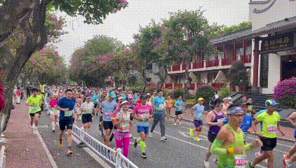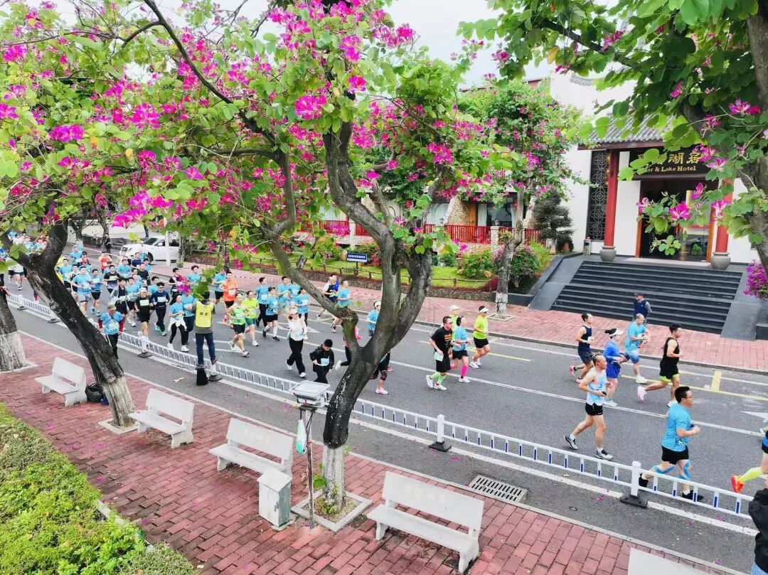 选手们在绿树成荫、鲜花绽放中奔跑,