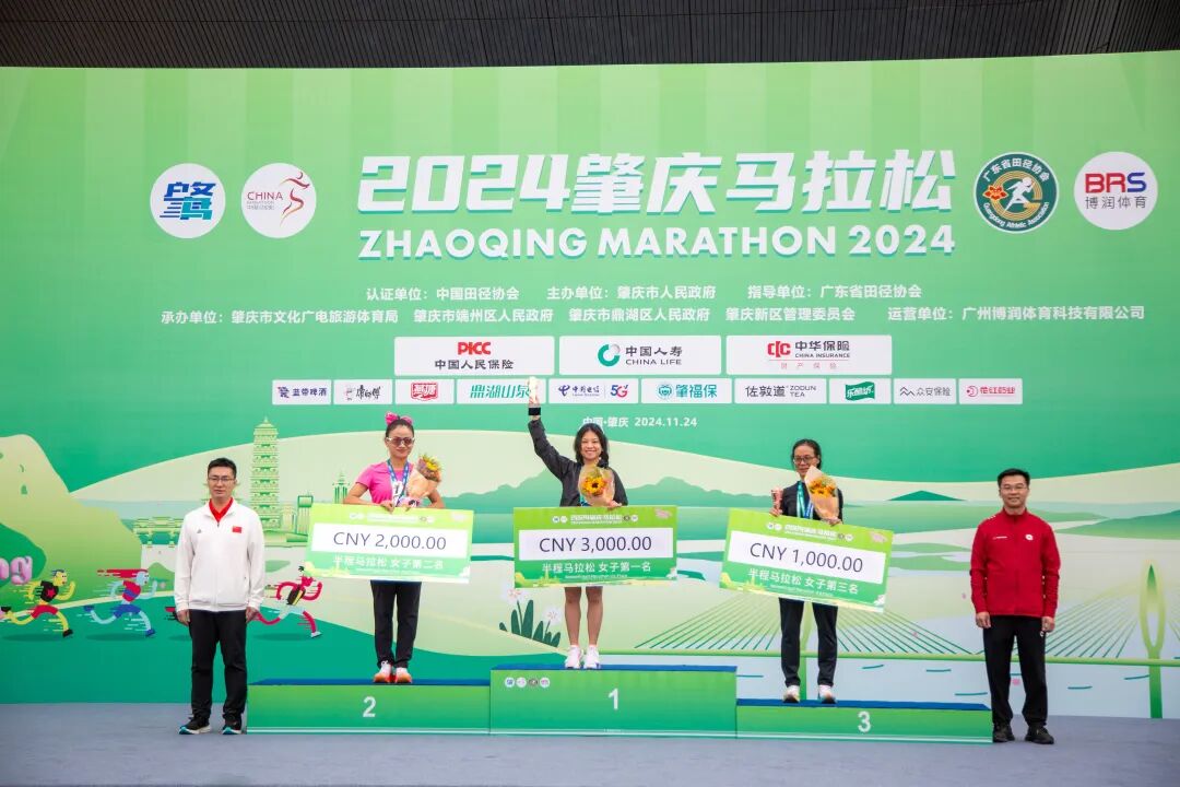△半程马拉松女子组第三名颁奖仪式。廖文奕 摄