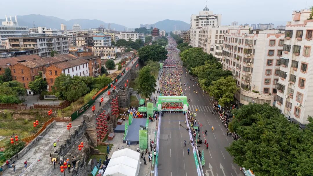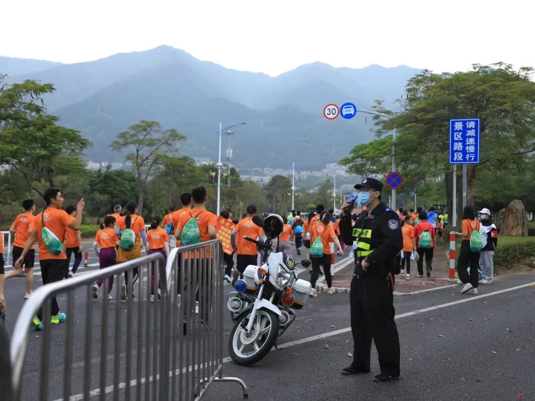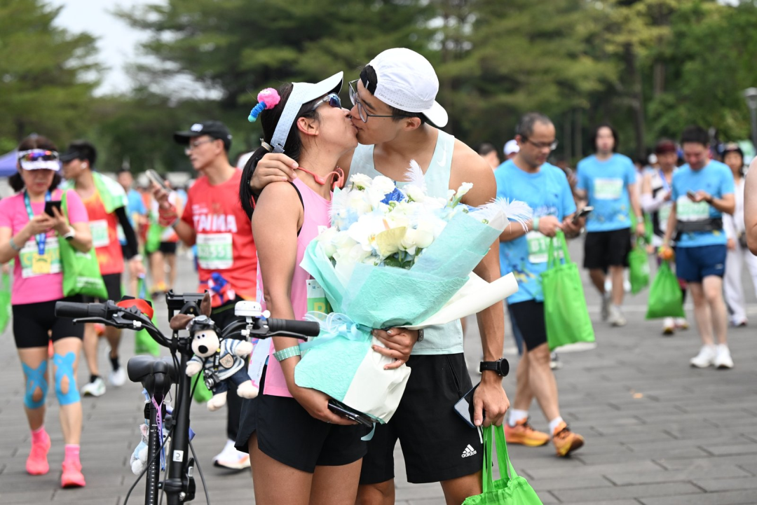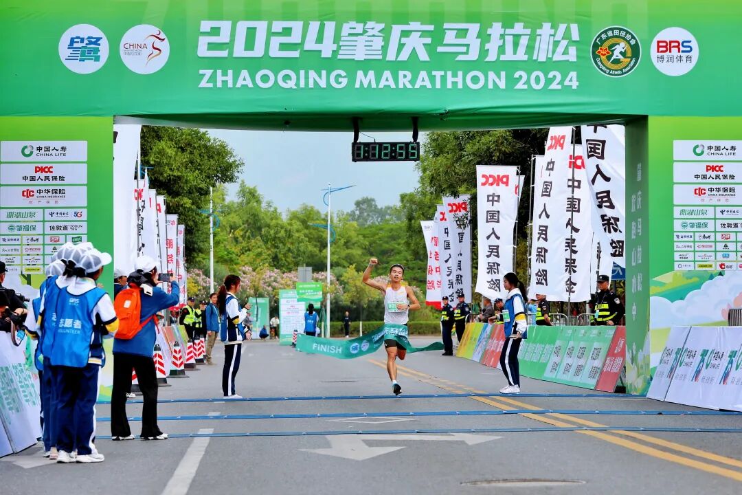 △马拉松男子组第一名选手冲线。廖文奕 摄