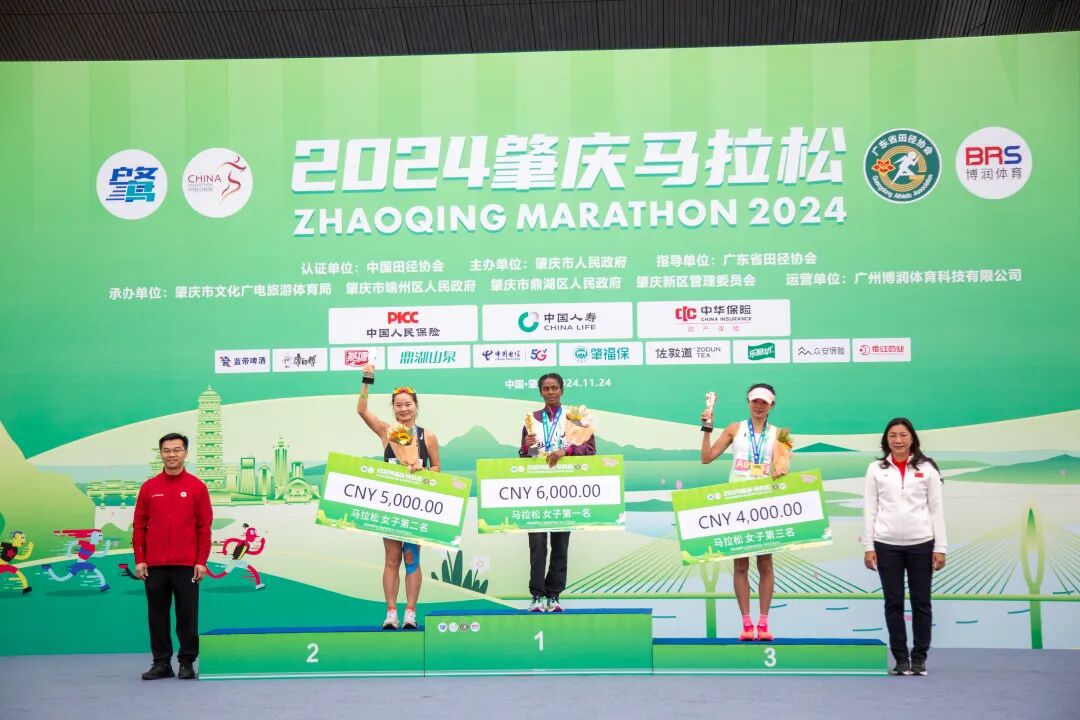 △马拉松女子组前三名选手颁奖仪式。廖文奕 摄