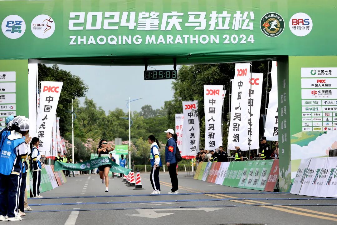 △马拉松女子组第一名选手冲线。廖文奕 摄