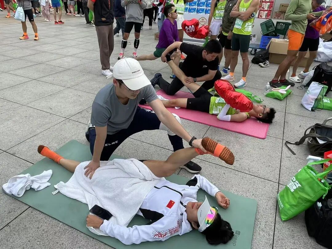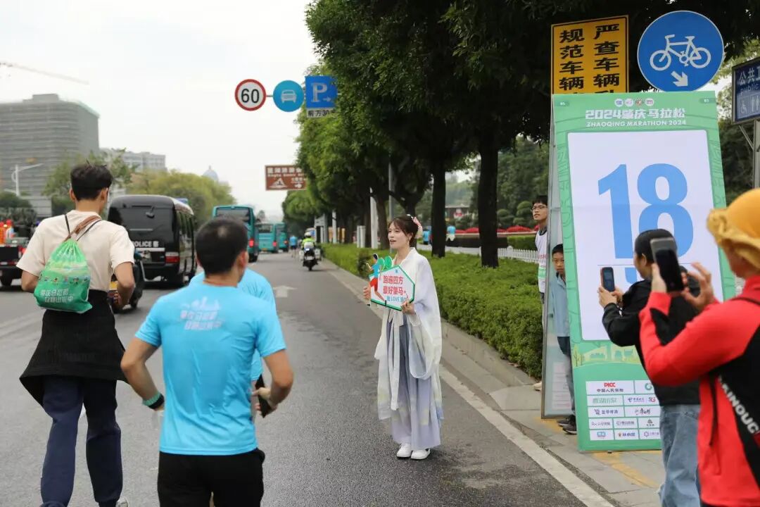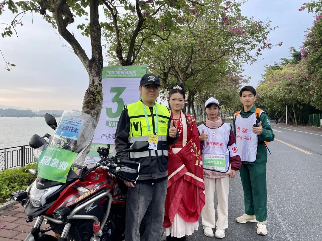 这是我们第三次来参加“肇马”赛事的志愿者,之前是在负责补给站的工作,这次很开心能在终点负责完赛物品发放。我们以最热情的态度服务所有参赛选手。