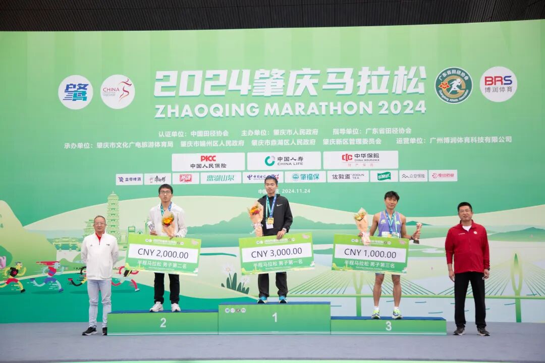 这是我第四次参加肇庆马拉松,并且拿到了冠军,这里的风景很好、氛围也不错。