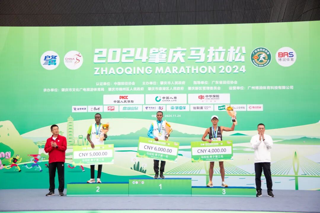 △马拉松男子组前三名选手颁奖仪式。廖文奕 摄