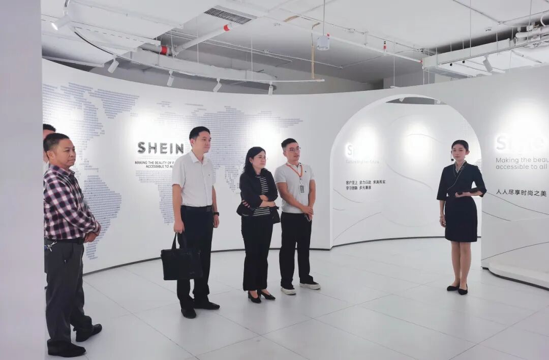 ▲市交通集团一行参观希音公司展厅,希音公司总监陈伟介绍了公司产品、物流运输需求等情况