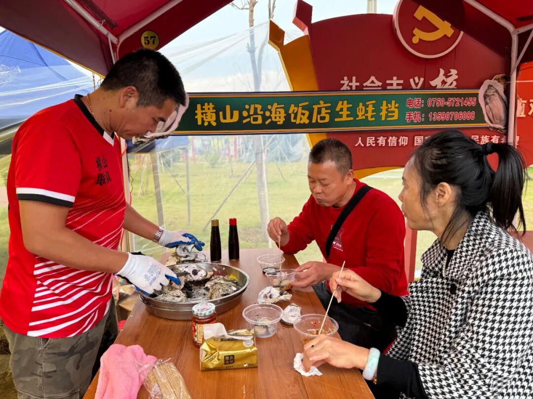 记者在现场看到,活动得到了广大游客的热烈响应和积极参与,游客们纷纷表示,通过此次活动,不仅品尝到了美味的生蚝和其他特色美食,还欣赏到了精彩的非遗项目和表演,收获满满。“夏天,我来汶村游玩听说今年将有金蚝节,所以我们特意在东莞开车几个小时过来,吃第一口新鲜的生蚝,真的很美味,还第一次品尝了原汁原味的蚝油,很惊喜!”游客李先生带着妻子来到活动现场,品尝生蚝后点赞道。