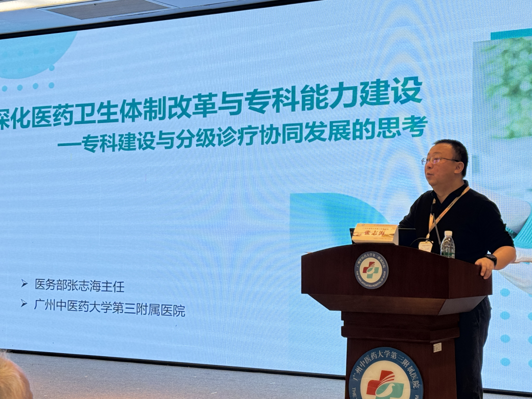 △ 广州中医药大学第三附属医院医务部主任张志海作《专科联盟建设政策解读》