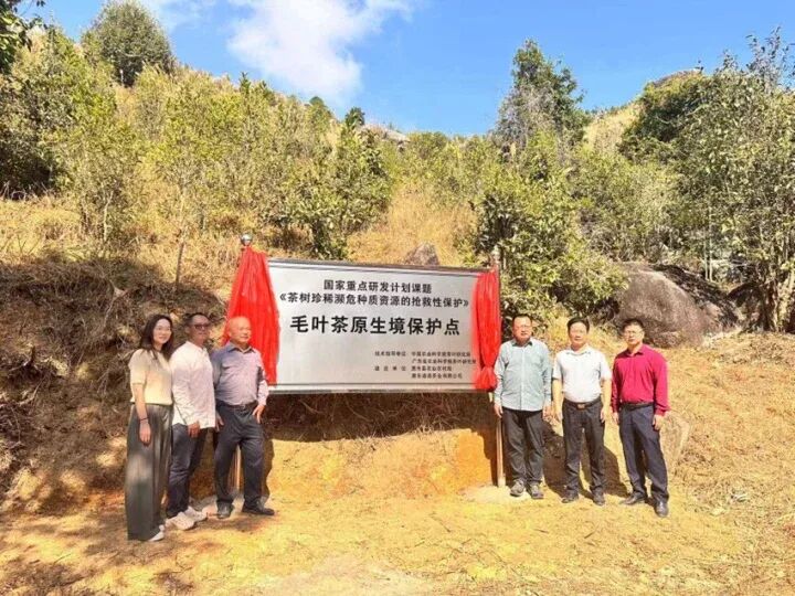 日前,中国农业科学院茶叶研究所金基强博士携研究员一行到惠东县九龙峰旅游区西华山的鼎高茶业有限公司举行“毛叶茶原生境保护点”挂牌仪式。惠东县农业农村局、惠东县九龙峰旅游区管委会及惠东县茶协代表参加活动。