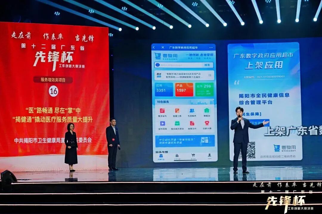 揭阳市卫生健康局参赛项目《“医”路畅通 尽在“掌”中——“揭健通”撬动医疗服务质量大提升》以揭阳市服务增效类一等奖的成绩晋级决赛。经过现场展演激烈角逐,该项目荣获第十二届广东省“先锋杯”工作创新大赛服务增效类项目三等奖,为揭阳市卫生健康局参加该项赛事以来取得的最佳成绩。