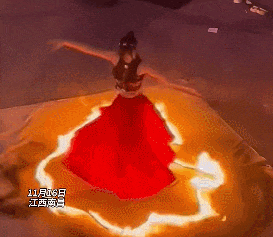 11月16日,江西南昌,一名女演员穿着特制裙子表演火裙舞时,裙摆被意外点燃,面对这一突发状况,女演员迅速解开裙子逃离,随后,作人员立即将明火扑灭,所幸未造成人员伤亡。