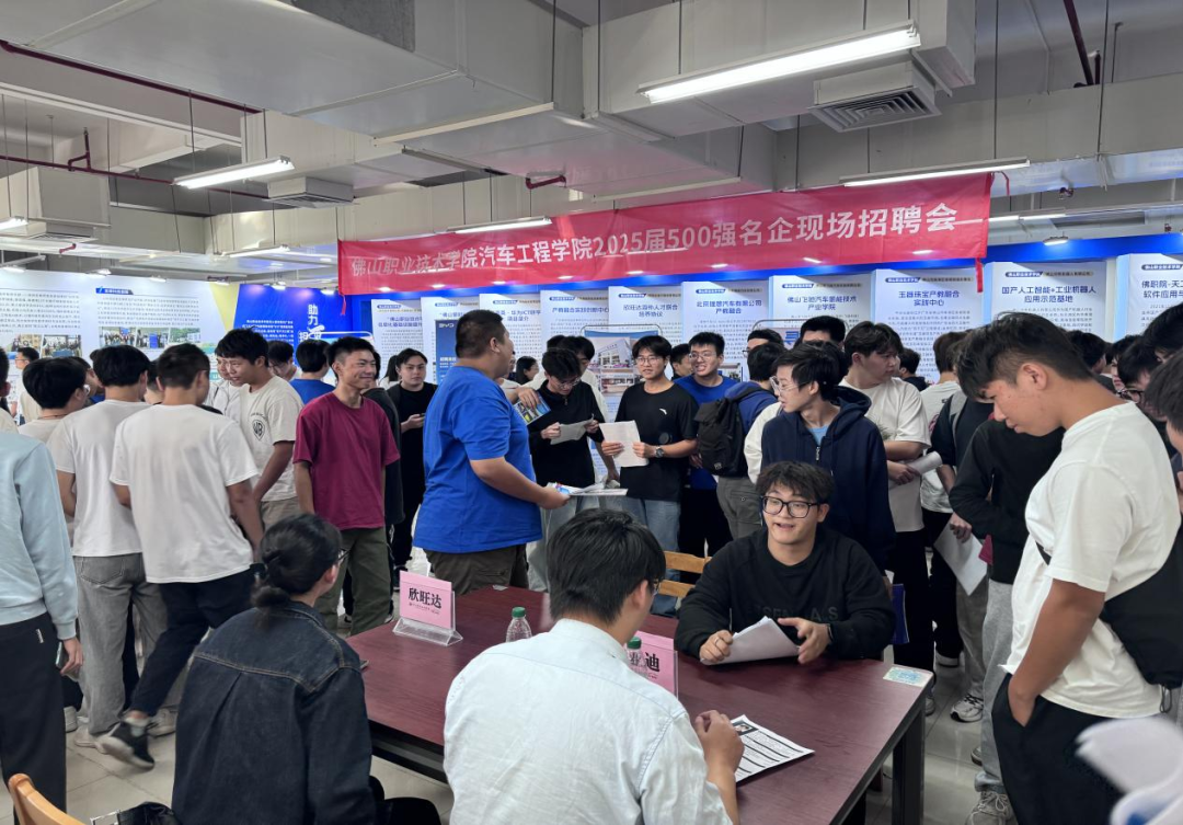 11月7日,佛山职业技术学院汽车工程学院在校内图书馆报告厅举办了“2025届毕业生就业政策宣讲会暨500强名企招聘会”。此次活动吸引了十余家500强名企参与,提供超过2300个岗位,共有400余名2025届毕业生前来求职,岗位供求比例超5:1。