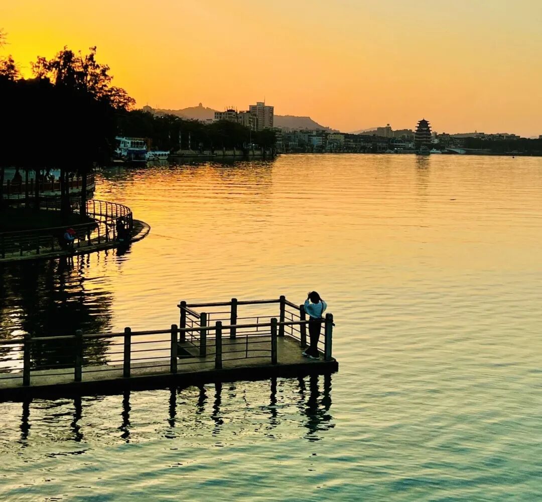 东江沙公园以营造东江文化为主线,园内以3.2公里长的绿道串联起风之园、草之园、主广场、雕塑园、舟之园、水之园等七个园区。当夜色逐渐降临,从金黄到绯红,霞光在壮阔的东江之上变幻流转。